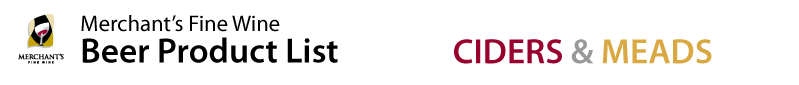 * This list is a reference of beers available to Merchant’s Fine Wine customers. Products and availability subject to change. Please call or visit the store to confirm pricing, current selection, and to reserve or product. Please see the
